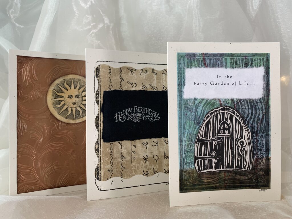 Happy World Card Making Day 2025 – October 4! I’ve been busy in the studio making handcrafted cards featuring authentic vintage elements, my own art, vintage rubber stamp and letterpress block impressions, and antique illustrations. I’m starting to get them listed in my Etsy shop, with many more on the way. (If you live in the SC Lowcountry, you can find some at The Beaufort Emporium as well.)